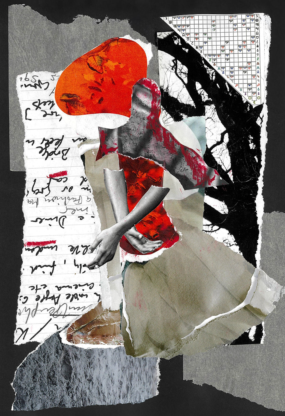 Original paper collages, hand-cut and assembled from magazines and found paper. A practice of looking again — taking what already exists and letting it become something else. Each work is unique, signed, and one of a kind.